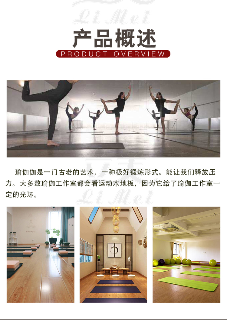 瑜伽是一种极好的身体和精神锻炼形式,瑜伽是一门古老的艺术,在我们繁忙、现代的时代,它在让头脑从分心的思想中解放出来,训练它集中注意力在当下起着作用。瑜伽在疼痛控制、关节炎、背痛、减轻焦虑和压力、消除抑郁方面都有帮助当看不同类型的瑜伽运动木地板时,大多数瑜伽工作室都会看运动木地板,因为它给了瑜伽工作室一定的光环。