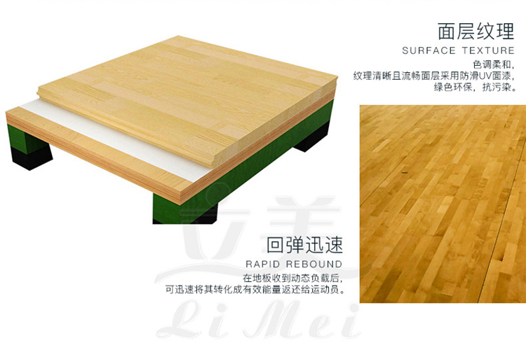 立美舞台运动木地板具有较强的吸震性能,能够有效地消除演员在跑动、跳跃时产生的冲击力,从而保护人体的韧带、关节、脊椎和大脑,减少演员跌倒时可能受到的伤害。