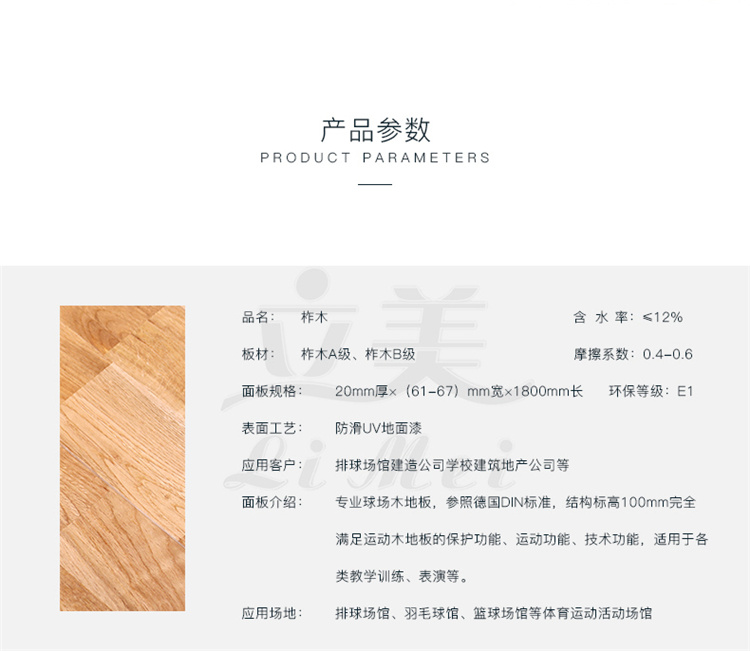 摩擦:当球员在运动木地板上快速移动时,摩擦系数的大小非常的重要的,理想的摩擦等级在0.4~0.6之间