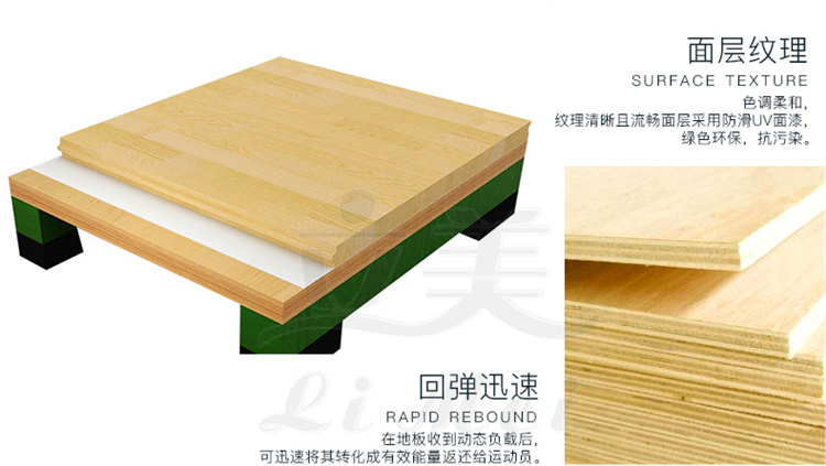 羽毛球馆运动木地板是采用缓冲层设计,能够提供极好的运动缓冲保护作用,从而大限度的去减少运动员的运动伤害地板也可以大量的吸收冲击力,做到充分的保护运动者的踝关节、膝关节的机能,同时,羽毛球运动木地板还拥有稳定的回弹性能,在运动员跳跃落地的过程中,产生的震动不会对相邻人员造成运动影响