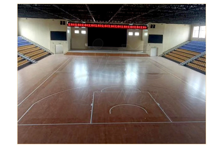 面板介绍: | 专业篮球场木地板,参照德国DIN标准,结构标高100mm完全满足运动木地板的保护功能、运动功能、技术功能,适用于各类教学训练、表演等。 | ||
